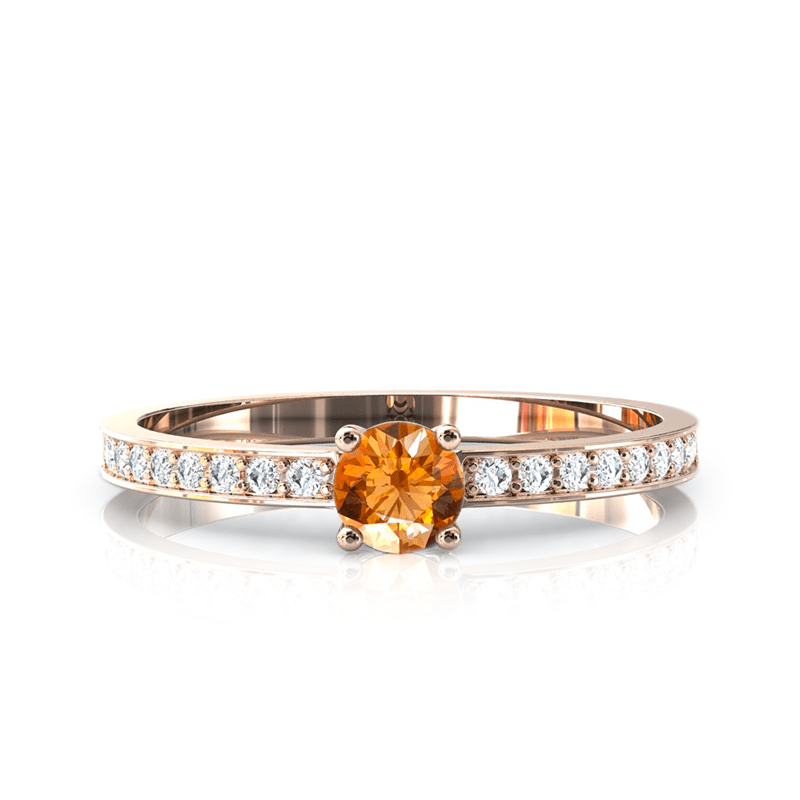 Solitaire en or rose 750 serti d'une Citrine et empierré de 18 diamants