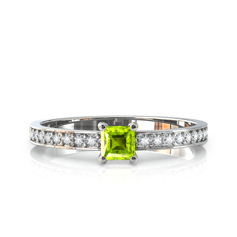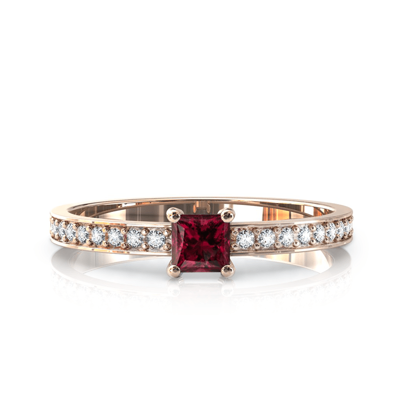 Semblable à sa cousine de taille ronde, ce solitaire en or 18 carats est serti d'une pierre de taille carrée appelée communément “princesse” en joaillerie.